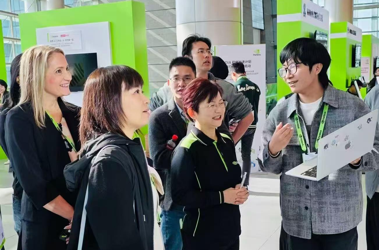 广州烁谷科技有限公司创始人谢伟铎向英伟达全球副总裁及管理层团队介绍产品与技术愿景。