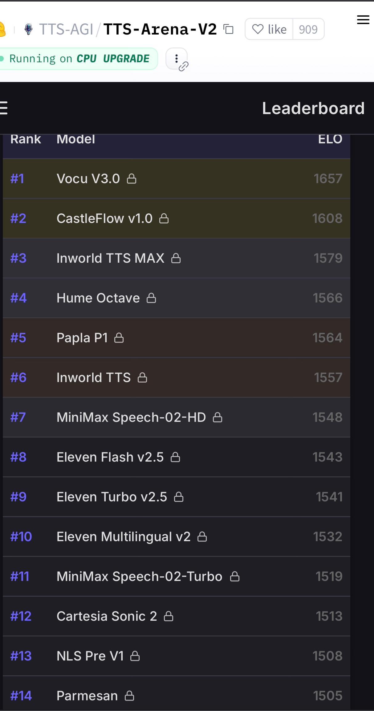 全球AI权威平台HuggingFace最新TTSArena榜单上,广州烁谷科技自研VocuV3模型位居第一。
